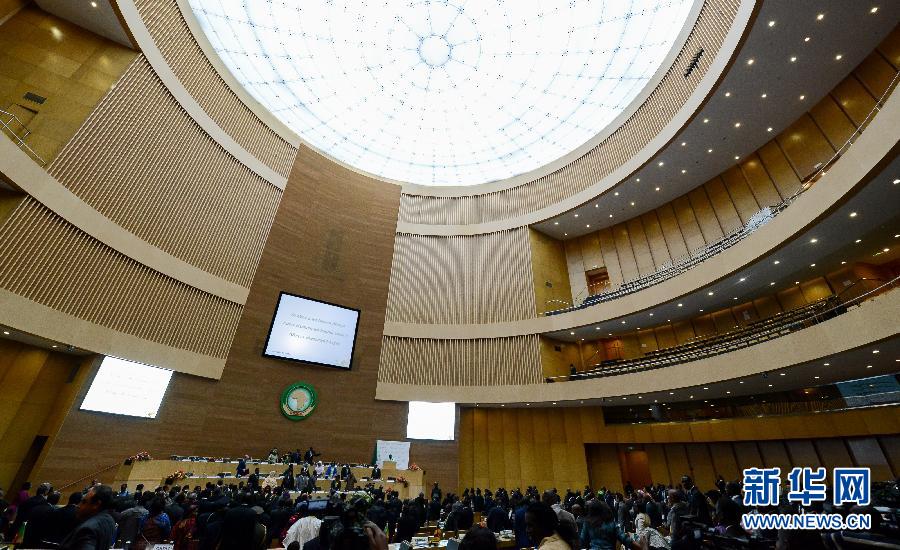 1月31日,与会代表在位于埃塞俄比亚首都亚的斯亚贝巴的非盟总部出席非盟第24届首脑会议闭幕式。为期两天的非洲联盟(非盟)第24届首脑会议31日在埃塞俄比亚首都亚的斯亚贝巴闭幕。新任非盟轮值主席、津巴布韦总统穆加贝在闭幕式上发表讲话说,各成员国将在非盟及非洲人民的支持和共同努力下,建立一个以人为本、和平繁荣的非洲。新华社记者翟健岚摄