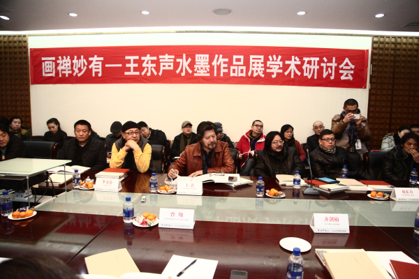 嘉宾们针对 “画禅妙有——王东声水墨作品展”展开了热烈的讨论。中国国家画院研究员、著名画家、评论家梅墨生先生表示:“作为王东声的老乡和他的老哥,看到这么多东声的朋友来给他捧场心里很高兴,这说明了东声人品的优秀。同时我认为东声的才气是全方位的,也是藏而不露的,从东声的作品中就可以看出他的修养与艺术造诣,这都值得我们学习和借鉴。”北京服装学院教授,著名画家、艺评家王焕青先生说道:“作为他的老师,我认为东声对油画体系有深入的了解,这也融入到了他的国画系统中,他的作品既令人耳目一新,又有传统的文人道义,对咱们中国文化有很深的体会,有这方面的兴趣与天赋。我对东声的作品不做评价,希望他对国画和书法的研究能通过自己的途径越做越深,让外行更易理解。”《中国书法》杂志主编、著名书画篆刻家朱培尔先生针对此次的王东声水墨作品展谈到了三点:“第一、东声的作品是心灵与画面的合二为一,作品简洁轻快,单纯里有丰富同时丰富里有单纯,给人不温不火的舒适感觉;第二、东声与很多河北画家一样都体现出了一种激进的绘画倾向,他们简洁平淡的绘画风格是相通的;第三、真正的文人画就是心灵的反映,画如其人,心与人和。”在王东声先生挚友云集的会场,在座的每位嘉宾都发表了自己的看法,对王东声先生的人品画艺做了积极肯定,对王东声先生作品的禅意、清雅风格表示了景仰欣赏,对恭王府安善堂王东声水墨作品展的精彩效果给予很高评价。(伍策 李凤森 王佳妍)