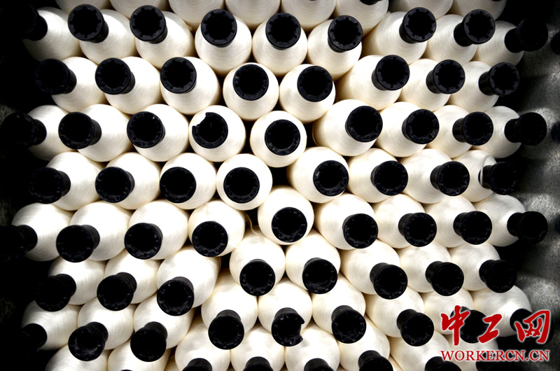 车间里待纺的粗纱。千丝万缕组成了我们的“身上衣”。 (中工网记者 笑语摄)