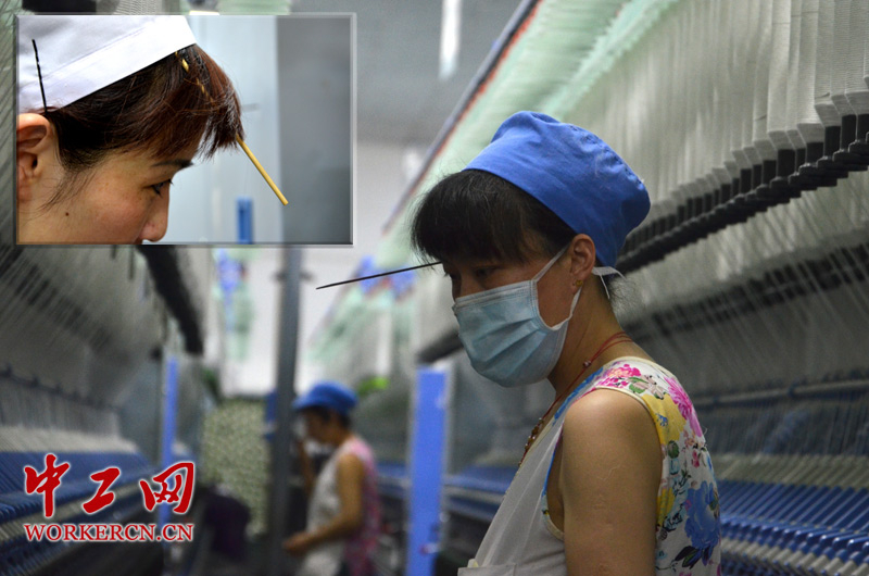 竹签和海绵是纺织女工的两样“秘密武器”,用来清洁棉絮。 (中工网记者 笑语摄)