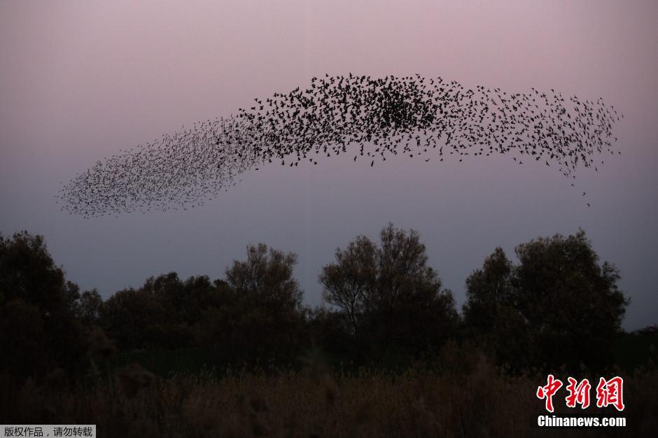 以色列成群椋鸟表演“群舞” 队形变化莫测