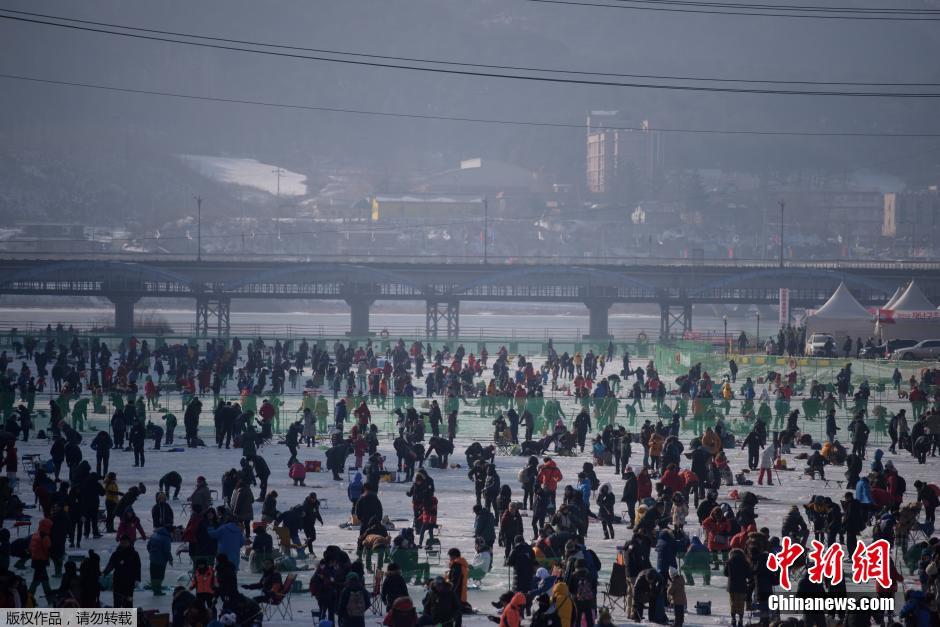 当地时间2015年1月31日,韩国华川郡,当地举行年度冰上钓鱼节,这一为期三周的活动吸引上百万民众到访。