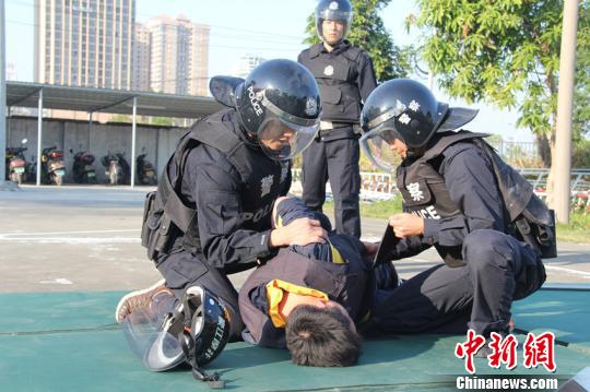 2月2日,广西北海铁路公安处举行警务技能比武竞赛,来自北海、防城港、钦州东等高铁所队的基层民警参加了比武。图为民警在比武竞赛中。 黄军华 摄