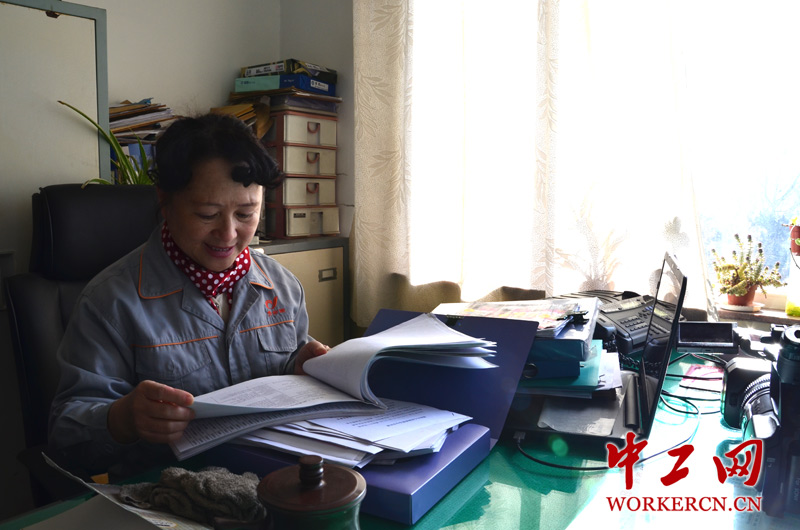 图为孙立凤主席正在查看困难职工档案。(中工网记者 笑语摄)