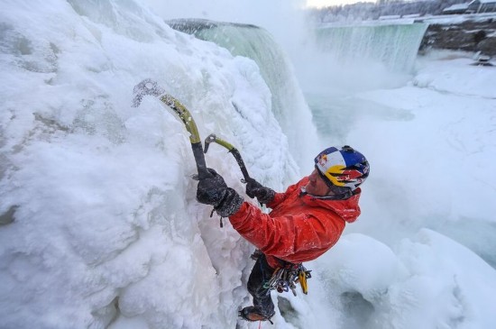 当地时间2015年1月27日,两位勇敢的攀爬者,依靠冰锤,成功攀爬尼亚加拉“冰瀑”,成为完成这一壮举的第一人。