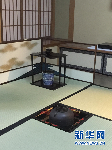 右侧一角,地炉、铁壶、茶几、茶粉盒、建水钵有致地摆放,似乎在静静地等待着客人的到来。