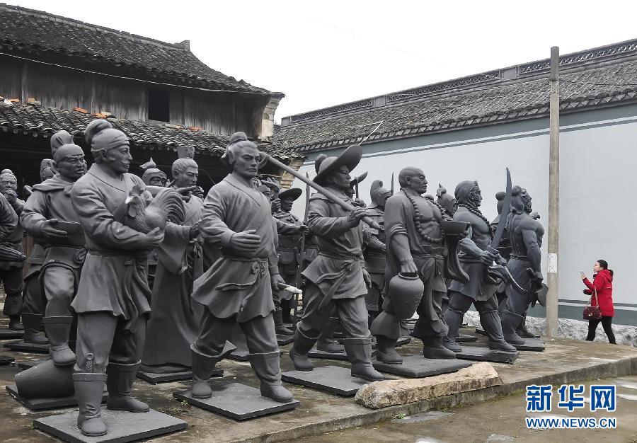 从2008年开始,深爱“水浒”故事的浙江宁波奉化市尚田镇鸣雁村泥塑艺人朱茂盛开始创作“水浒”108将泥塑。经过几年的努力,目前,朱茂盛已经创作完成102尊泥塑,余下的6尊人像已基本成形,预计于今年4月全部完成。这些水浒人物泥塑每个身高2米左右,重约250公斤。
