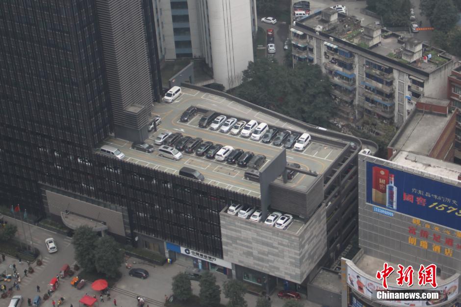 2月2日,重庆石桥铺一高楼平台上停了近30辆小车。据悉,楼顶上建停车场是为了缓解该地长期停车难的问题。图为楼顶平台上停着不少车辆。戴璐 摄
