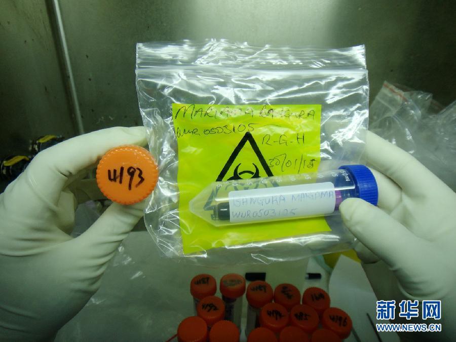 1月31日,在塞拉利昂首都弗里敦中塞友好医院的中国移动实验室内,一份刚送来的埃博拉病毒样本血清正待检测。当日,记者跟随中国实验室检测队姜涛、赵光宇两名队员,“全副武装”地进入中国援塞移动式生物安全三级实验室,与埃博拉病毒面对面,直击病毒样本检测第一线工作。新华社发 孙鼎盛 摄 图片来源:新华网