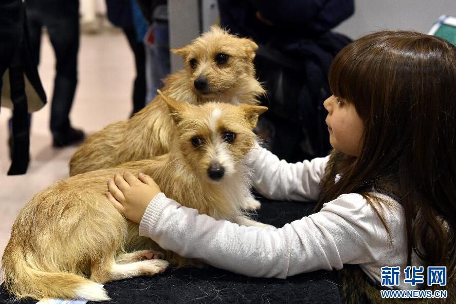 2月1日,在葡萄牙里斯本举办的宠物展上,一名小朋友与狗狗亲密互动。当日,为期三天的葡萄牙宠物展在葡首都里斯本会展中心落下帷幕。本届宠物展上共展出了2500多只宠物,除常见的家庭宠物外,还包括蜥蜴、变色龙、蟒蛇和猫头鹰等罕有种类。 张立云 摄 图片来源:新华网
