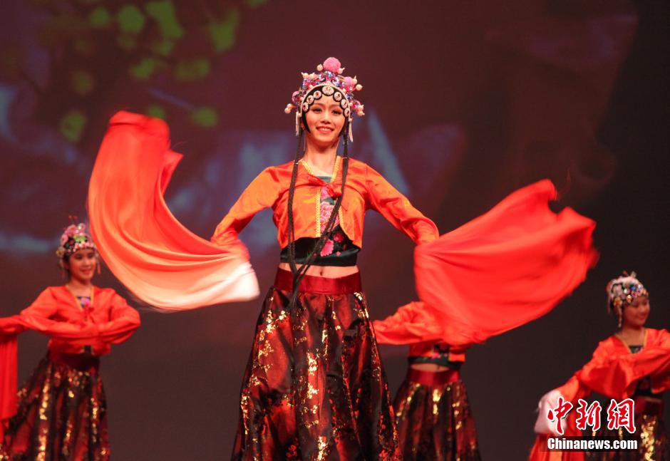 当地时间2月1日,大休斯敦地区侨学界举办“拥抱春天”2015年春节联欢晚会,将美南地区庆祝中国农历新年的系列活动推向高潮。本次晚会,除了休斯敦侨界文艺精英表演的歌舞之外,还邀请到中国音乐学院顶级大师组成的紫禁城室内乐团演出经典中国民乐,不仅展示了中华文化的独特魅力,更为华裔与美国主流民众加强交流搭建了平台。图为古典舞《百花争艳》。中新社发 王欢 摄