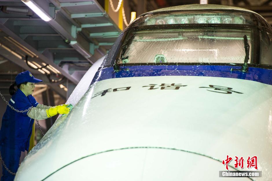 动车“洗脸”迎春运