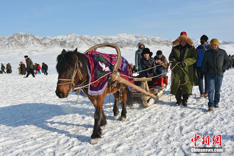 近日,“中国猎鹰之乡”新疆青河县举办哈萨克民俗文化节。猎鹰捕猎、牧羊犬比赛、雪上叼羊比赛、马拉雪橇表演等民俗精彩亮相,吸引了来自全国的游客观看。 中新社发 刘斌 摄