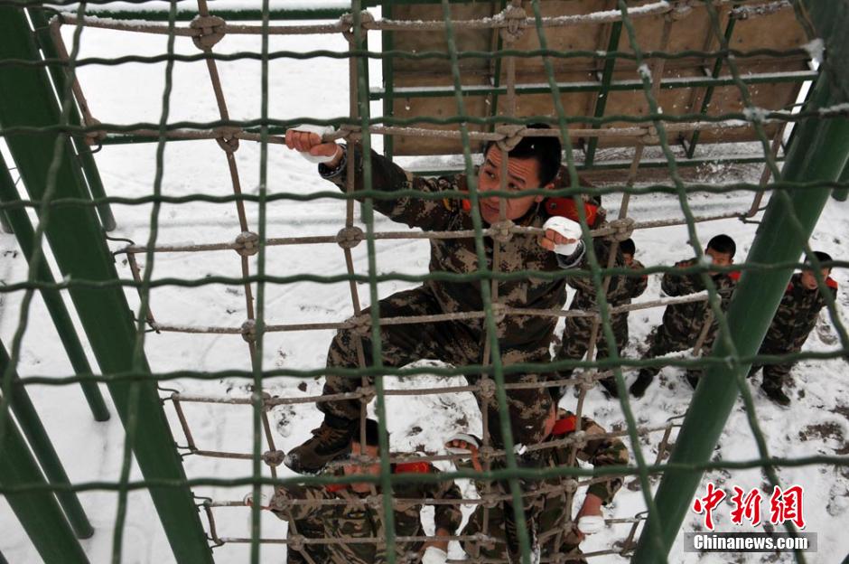 2月2日,武警新疆边防总队喀什边防支队某中队“猎鹰”班正在组织新兵开展胆量、意志、耐力等方面的专项训练。据悉,该中队在新兵下连后,会将“狙击手”苗子选入“猎鹰”班,并在恶劣环境下开展为期三个月的定点侦察、雪地潜伏、夜袭等专项训练,新兵只有顺利通过最终考核后才能成为“猎鹰”班成员之一。彭新程 摄