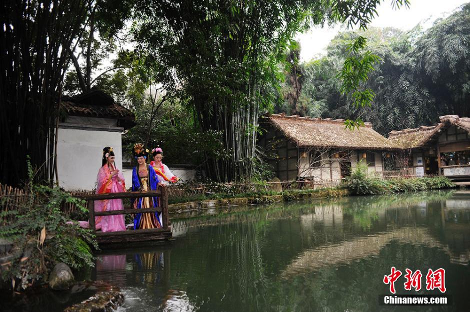 成都杜甫草堂梅花绽放 民众着古装赏梅花