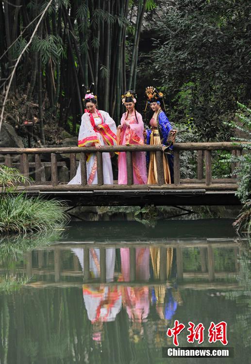 成都杜甫草堂梅花绽放 民众着古装赏梅花