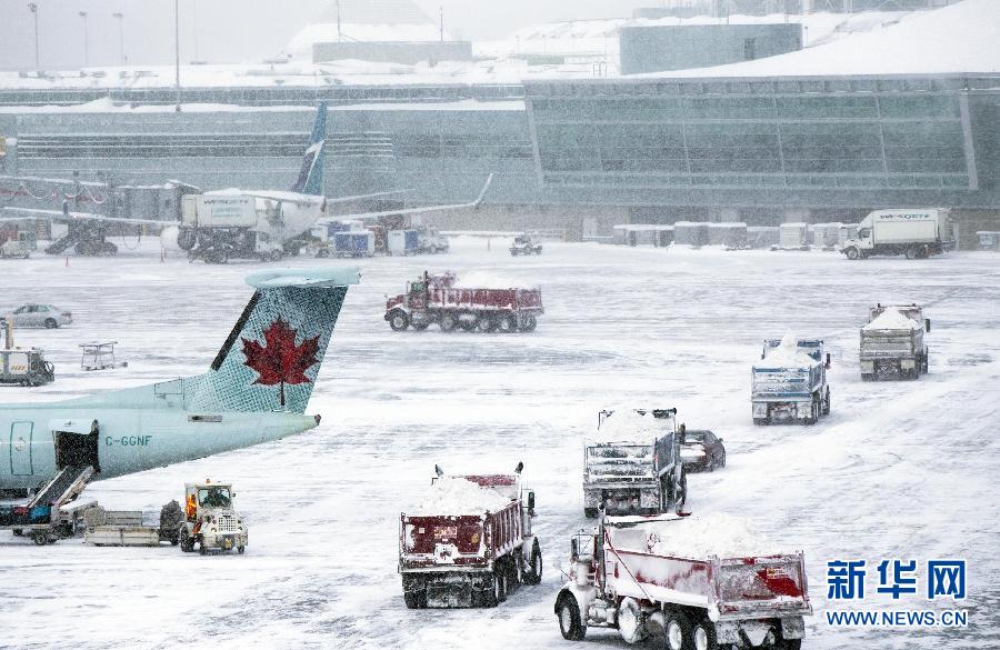 2月2日,在加拿大多伦多皮尔逊国际机场,卡车满载被清除的积雪驶离停机坪。当日,加拿大多伦多地区遭遇强降雪天气,部分地区降雪量超过30厘米,数百架次航班被延误或取消。 新华社发(邹峥摄)