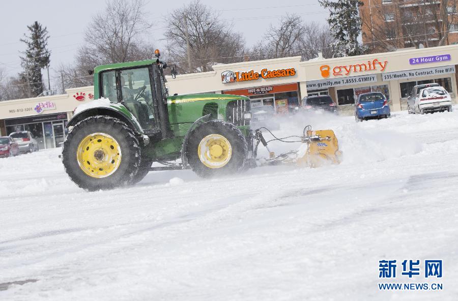 2月2日,在加拿大多伦多,一名男子在自家楼前清扫积雪。当日,加拿大多伦多地区遭遇强降雪天气,部分地区降雪量超过30厘米,数百架次航班被延误或取消。 新华社发(邹峥摄)