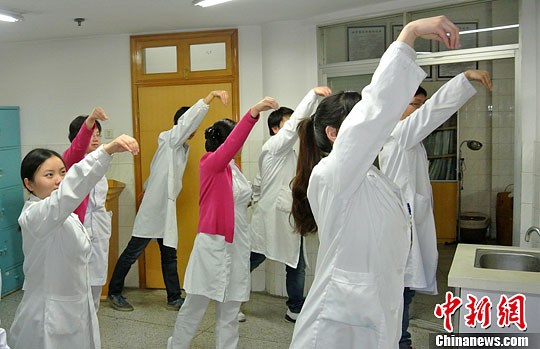 2月3日,6名针灸推拿专业的实习中医接受了湖南省人民医院出科考核——“五禽戏”,并顺利通过。梁辉 摄