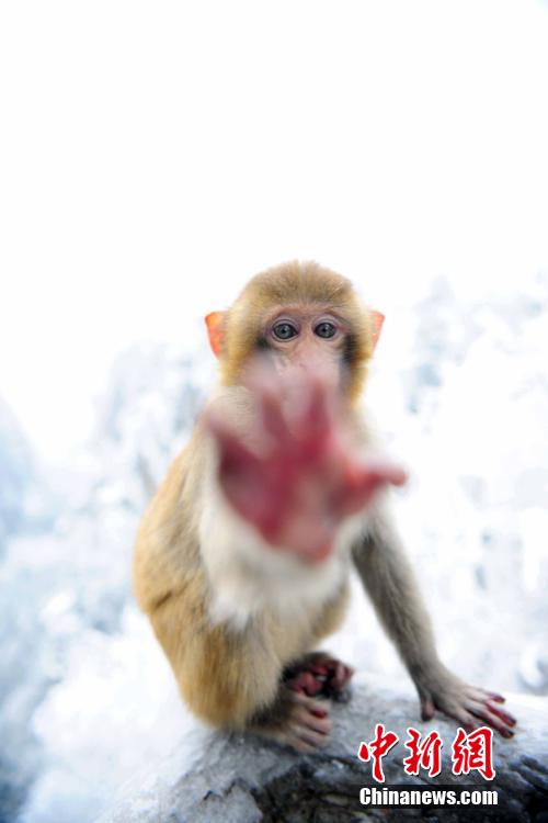 2月3日,湖南张家界武陵源核心景区内的猕猴在雪后的松树上嬉戏。连日来,张家界迎来冰雪天气,武陵源核心景区的猕猴为雪景增添了几分乐趣。中新社发 张明涛 摄 图片来源:CNSPHOTO