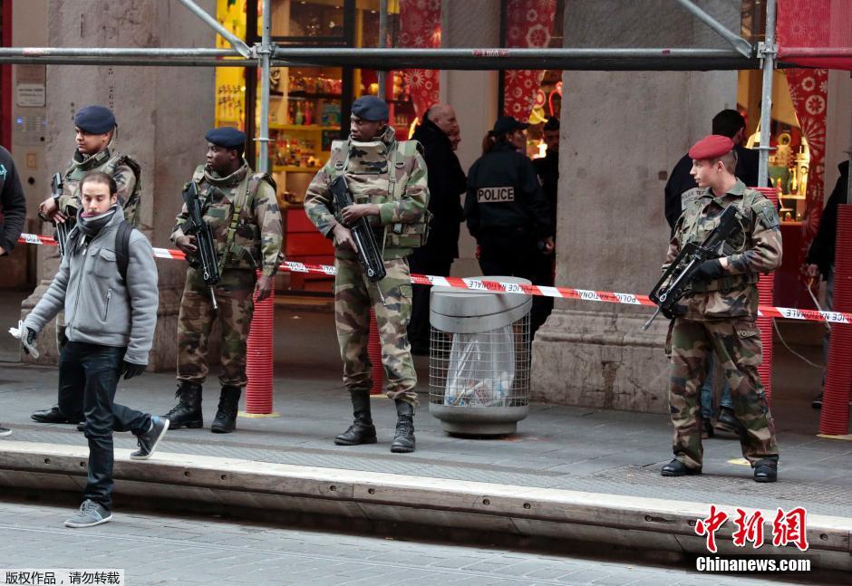 当地时间2015年2月3日,法国尼斯,一名持刀男子在一个犹太人活动中心前持刀袭击值勤的三名军人。两名军人受轻伤,袭击者已被警方逮捕。据悉事发时,这名男子穿过人行道,从包里拿出一把长刀向一名军人砍去,将其面颊砍伤。另外一名军人在制服这名男子过程中被砍伤胳膊。
