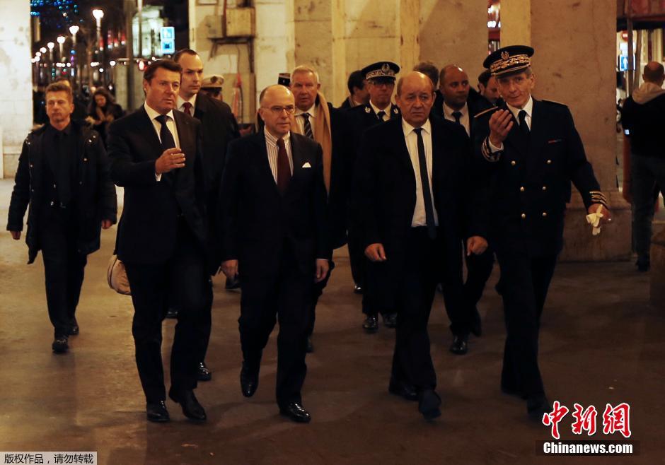当地时间2015年2月3日,法国尼斯,法国国防部长让-伊夫·勒德里昂探望被袭击的三名士兵。一名持刀男子在一个犹太人活动中心前持刀袭击值勤的三名军人。两名军人受轻伤,袭击者已被警方逮捕。据悉事发时,这名男子穿过人行道,从包里拿出一把长刀向一名军人砍去,将其面颊砍伤。另外一名军人在制服这名男子过程中被砍伤胳膊。