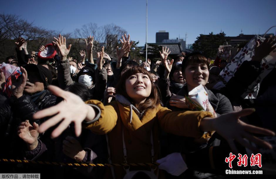 当地时间年2015年2月3日,日本东京,民众参加在当地增上寺举行的撒豆仪式(Mame-maki),由站在台上的社会名人向台下抛撒幸运豆和糖果。人们相信接到豆子或糖果能带来好运,还能驱邪。这一活动在每年农历立春前后举行。