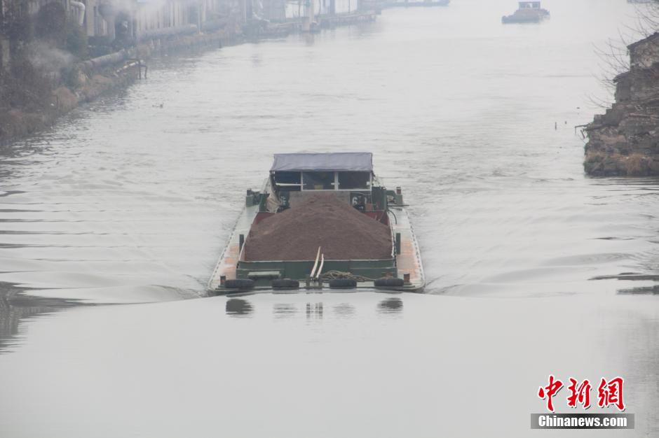 2015年2月3日中午,一大片“云雾”正升腾在运输船穿梭不停的浙江绍兴市区独树大桥下的浙东古运河畔。 中新社发 李瑞昌 摄 图片来源:CNSPHOTO