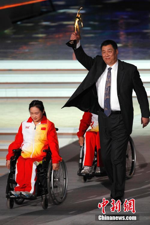 2月1日晚,2014年“CCTV中国体坛风云人物”颁奖盛典在北京举行,中国女子轮椅篮球队获年度残疾人体育精神奖。 中新社发 富田 摄