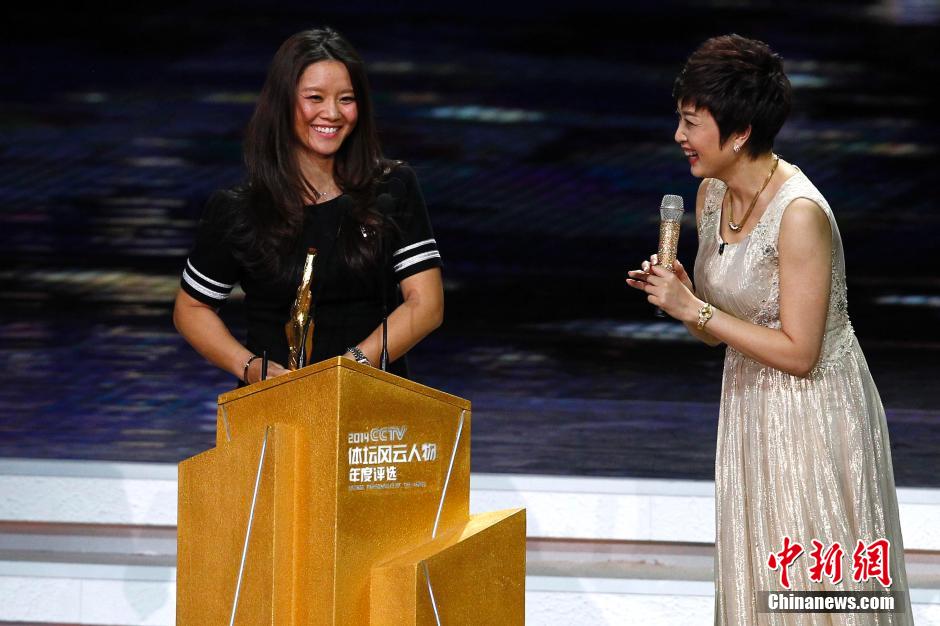 2月1日晚,2014年“CCTV中国体坛风云人物”颁奖盛典在北京举行,中国网球选手李娜获得年度最佳女运动员奖。 中新社发 富田 摄