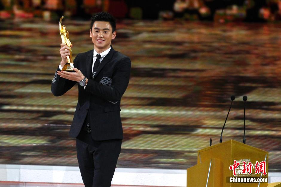 2月1日晚,2014年“CCTV中国体坛风云人物”颁奖盛典在北京举行,中国游泳选手宁泽涛获年度最佳男运动员奖。 中新社发 富田 摄