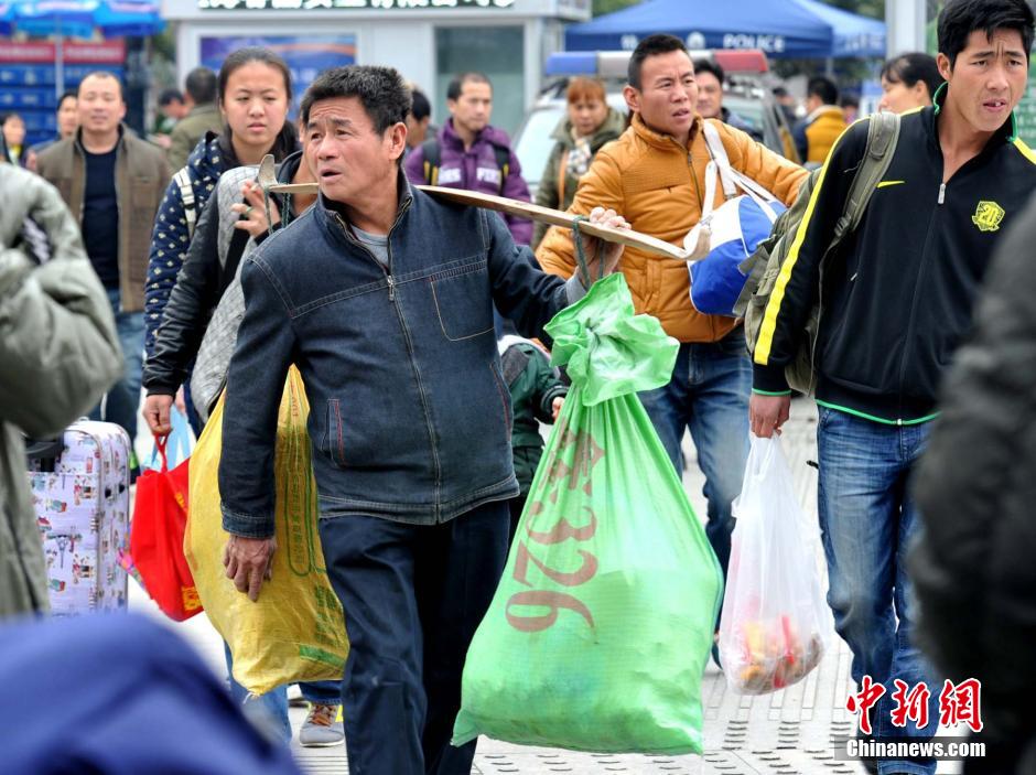 2月3日,外来务工人员前往福州火车站等候进站上车返乡。邻近春节,许多农民工为避开春运高峰,提早结算好工钱纷纷踏上返乡的列车。张斌 摄