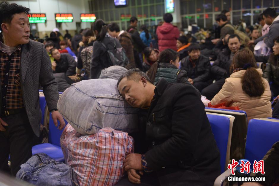 2月1日,乘坐浙江首趟春运临客的旅客在杭州火车站的候车大厅候车。当晚,浙江省铁路春运开行最早的临客列车杭州开往重庆北的K4173次列车在杭州火车站发车。目前K4173次列车节前开行计划为2月1日至2月15日。 中新社发 李晨韵 摄