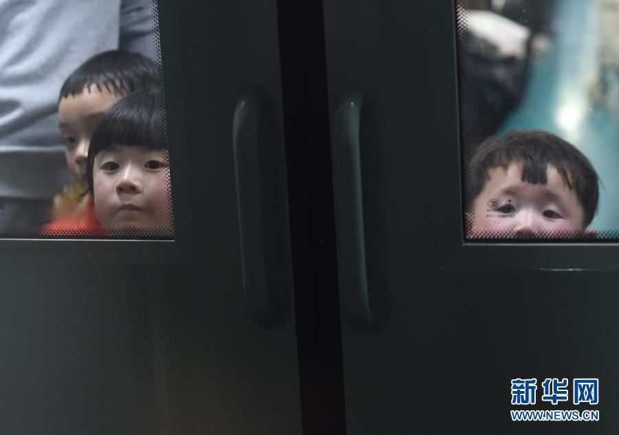 2月4日,几名小朋友从K5612次列车上向外张望。当日是春运第一天,记者在凌晨登上从杭州始发的首趟春运列车K5612,记录春运旅途。这趟临客列车零时23分从杭州站出发前往安徽阜阳。据上海铁路局杭州客运段介绍,春运期间杭州客运段共将承担22对临客的客运乘务工作,尽最大努力帮助旅客平安返乡。 新华社记者韩传号摄