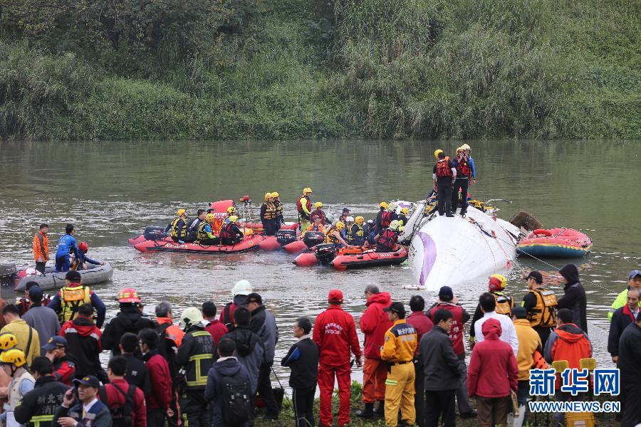 2月4日,工作人员在复兴航空班机坠河现场进行救援。据台湾媒体报道,复兴航空班机坠河事件中已有8人遇难。另据台湾观光部门证实,航班上有大陆游客。 新华社记者金立旺摄