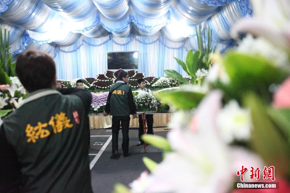 图为台北市第二殡仪馆工作人员正在为此次空难罹难者布置灵堂。中新社发 路梅 摄