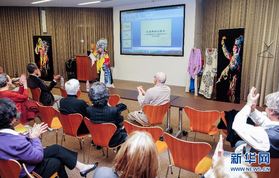 2月3日,中国京剧表演艺术家、国家一级演员孙萍在美国加州大学洛杉矶分校扮装“杨贵妃”现场演示京剧《贵妃醉酒》片段。当日,中国京剧表演艺术家、国家一级演员孙萍和叶金森受邀来到加州大学洛杉矶分校为该校部分师生做题为“京剧艺术”的演讲,现场讲解和演示了中国京剧艺术的魅力。新华社记者张超群摄
