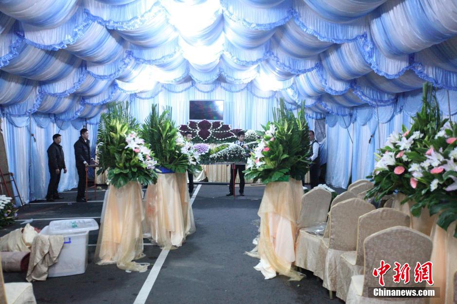 2月4日10时56分,台湾复兴航空一架从台北飞往金门的轻型民航班机,起飞后不久在台北市南港区疑似撞到高架桥后坠落在基隆河水面,造成重大人员伤亡。图为台北市第二殡仪馆内正在布置此次空难罹难者灵堂。中新社发 路梅 摄