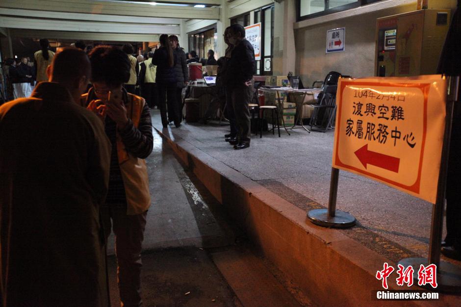 2月4日10时56分,台湾复兴航空一架从台北飞往金门的轻型民航班机,起飞后不久在台北市南港区疑似撞到高架桥后坠落在基隆河水面,造成重大人员伤亡。图为台北市第二殡仪馆设立复兴空难家属服务中心。中新社发 路梅 摄