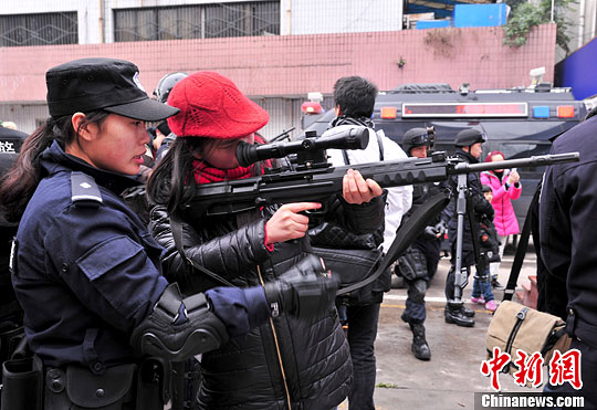 您参加过警队升旗吗?你摸过真枪吗?你想体验一下110是怎样处置群众报警的吗?你想和乐山公安特警零距离互动吗?春节前夕,来自成都、乐山等地的20多名民众和学生代表通过乐山公安的微博微信等渠道,报名一睹警营风采。