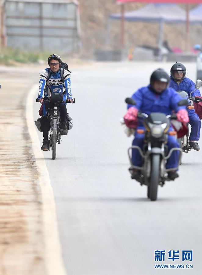 2月4日,林富荣在321国道广西梧州段骑行。 2月1日,27岁的广西平南县小伙林富荣骑上自行车,从他打工的广东省中山市启程,踏上400多公里的返乡之路。喜欢自行车运动的林富荣在中山市一家酱油厂工作,往年都是坐车返乡过年。由于今年工厂放假较早、时间充裕,便尝试骑自行车回家,计划2月5日到家。新华社记者 黄孝邦 摄