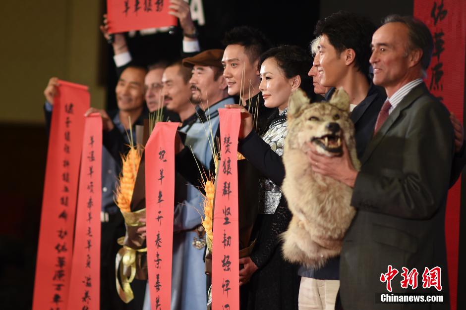 2月4日,电影《狼图腾》首映发布会在北京举行,该片导演让·雅克·阿诺、主演冯绍峰、窦骁、昂和妮玛等亮相推介影片。该片将于2月19日大年初一在全国公映。中新社发 廖攀 摄