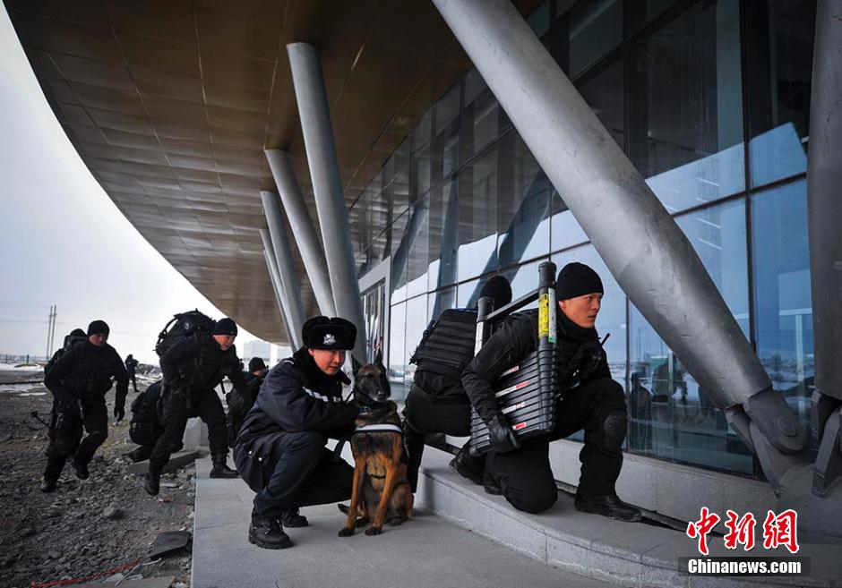 图为突击队员快速出击,根据现场地形向场馆发起攻击。刘新 摄