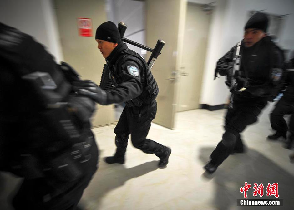 图为突击队员进入场馆,快速搜索。刘新 摄