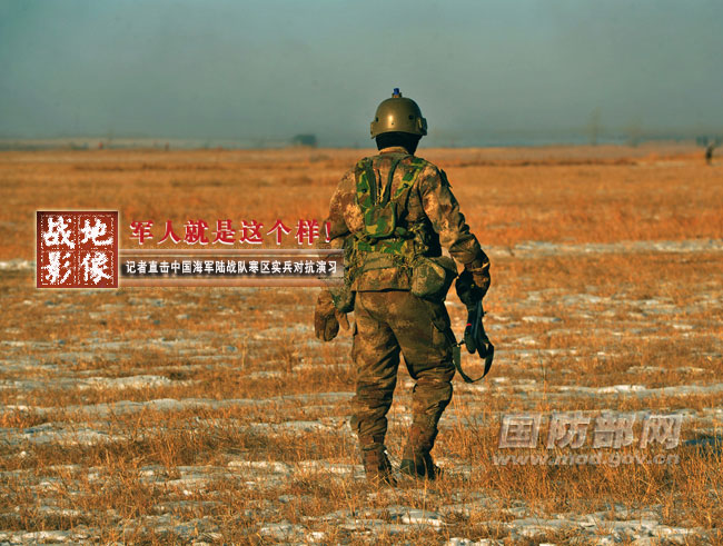 演习中被击中后判负出局,落寞的身影。