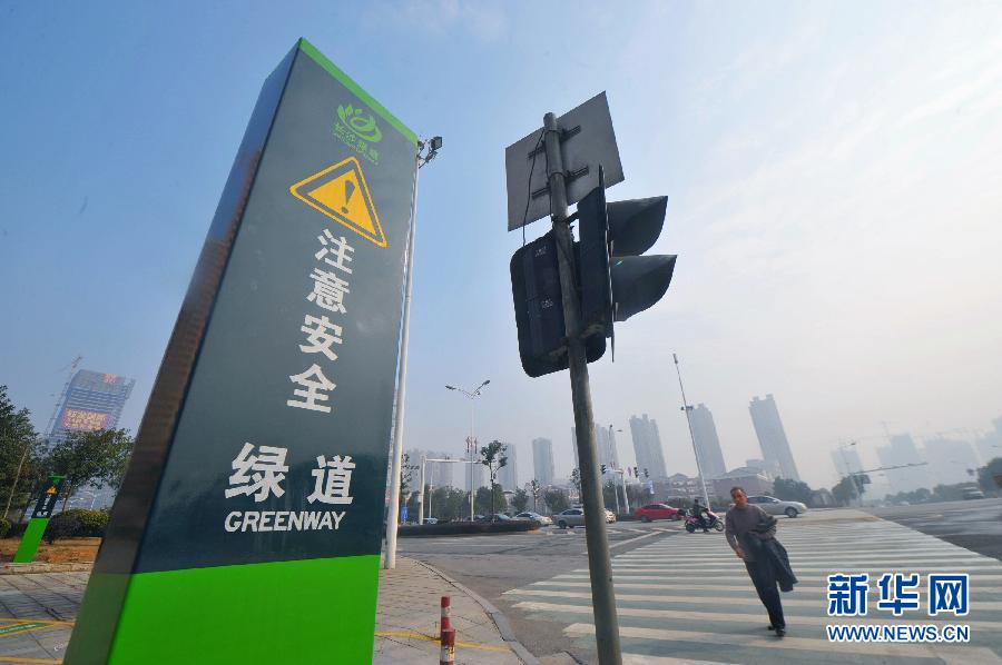 这是长沙市金星路上的绿白相间斑马线(2月5日摄)。近日,一组绿白相间的斑马线亮相湖南省长沙市金星路。据介绍,这是长沙首次推行的“绿道”。“绿道”采用绿白相间横条纹作为斑马线,提醒行人过街要走斑马线,也提醒过往司机减速慢行。新华社记者 龙弘涛 摄