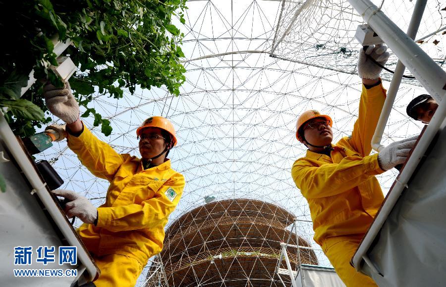 2月5日,国家电网绍兴市上虞区供电公司工人在温室大棚检测用电设施。作为节约土地,环保种植的创新,浙江上虞一处高达24米的高空温室大棚于2014年投入使用,该大棚占地3650平方米,内部果蔬栽培面积28111平方米,利用水、电和光,采用清洁节约的生产模式种植各种农业特种蔬菜,创造了比常规种植每亩增收7500多元的经济效益。新华社记者 王小川摄