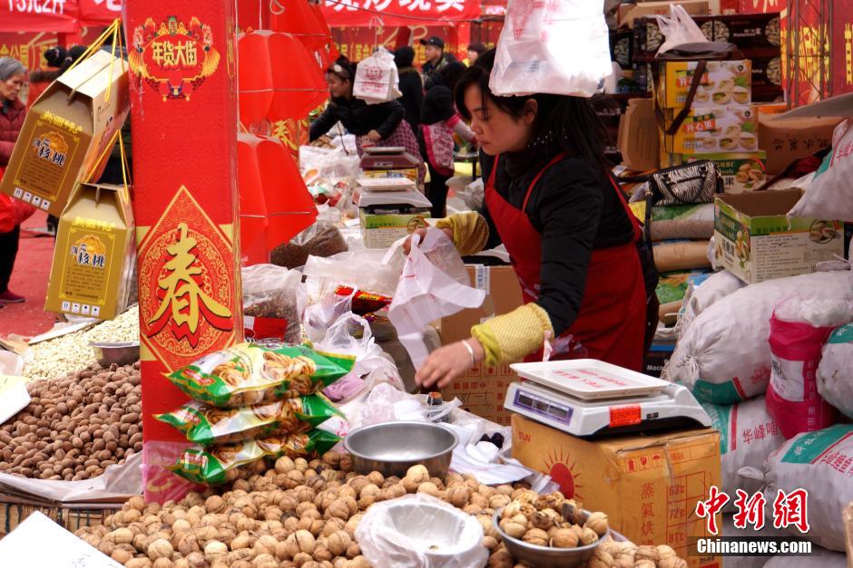 2月5日,随着春节的临近,西安的年货市场也开始“红火”起来,前来采购新年喜庆饰品、酒水饮料和食品的市民络绎不绝。张远 摄
