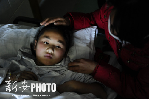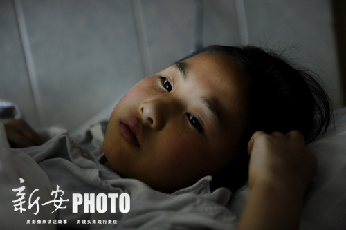 昨日,久违的太阳难得露了笑脸。但是武静的病床在走廊上,靠着墙壁,她看不到阳光。昏沉的光线下,她是那么的沉静,那双深邃黑亮的大眼睛,仿佛会说 话。她会不时地问着妈妈:“妹妹什么时候能出来?”薛桂芹轻声说:“你的骨髓就像种子一样,种在了妹妹的身体里。等它们生根发芽了,妹妹就能出来了。”武 静乖乖地听着,薛桂芹则转过头,悄悄用衣袖擦拭泪水。