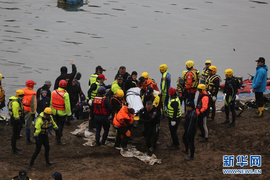 2月6日,救援人员将遇难者遗体送上岸。 新华社记者 金立旺 摄